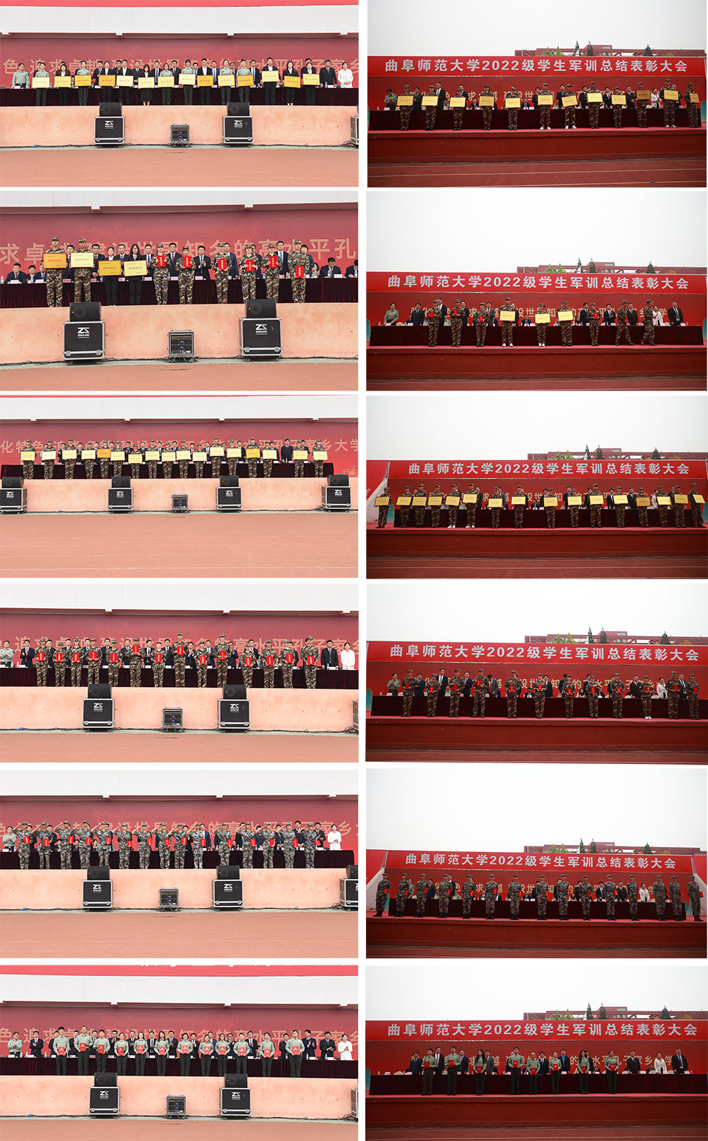 大会还对军训工作优秀单位、内务卫生先进单位、拔河比赛获奖单位、演讲比赛一、二、三等奖获得者、优秀连队、优秀教官、优秀标兵、军训优秀指导员等进行了表彰,在主席台就坐的领导为获表彰的集体和个人颁发了证书和奖牌。
