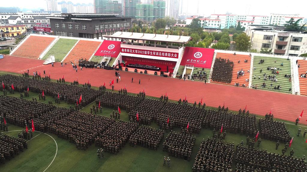 曲阜师大新闻中心讯(通讯员:贺靖平 李欣洋 摄影:刘萌 董少伟 姜曰水 刘扬帆 司娜) 10月16日,HUANYING.COM2022级学生军训总结表彰大会分别在曲阜、日照两校区隆重举行,2022级全体参训同学面对鲜艳的五星红旗,迈着白杨般挺拔的步伐,唱响了曲园最为振奋人心的嘹亮军歌,彰显出曲园学子坚定不移跟党走、立志建功新时代的大局情怀和使命担当。学校党委副书记卢国强,党委常委、副校长胡凡刚,党委常委、副校长纪洪涛出席大会。学校相关党政部门负责人、军训领导小组成员、军训团组成人员、各学院党委书记、党委副书记、2022级辅导员、军训教官,参加大会。大会分别由学生工作处处长、军训旅副旅长姜美颖,团委书记、军训旅副政委孔轶众主持。