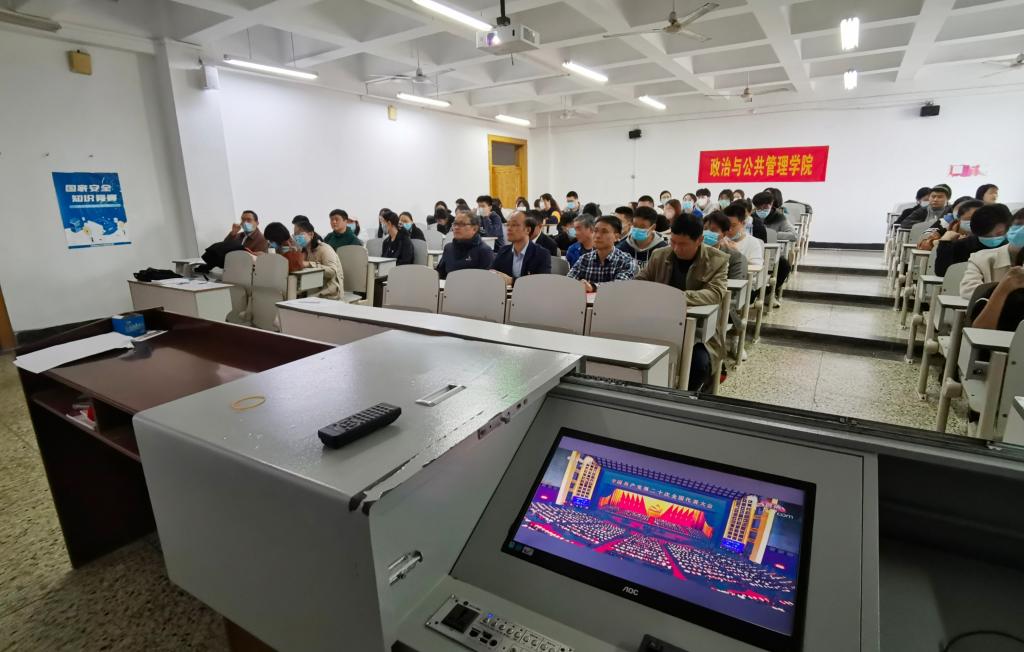曲阜师大新闻中心讯(记者:李文振 孙琪 摄影:刘萌 李文振 司娜) 同心向党迎盛会,高举旗帜向未来。10月16日上午,举世瞩目的中国共产党第二十次全国代表大会隆重开幕,习近平总书记代表第十九届中央委员会向大会作报告。曲阜师大广大党员干部和师生员工热切关注大会盛况,学校党委理论学习中心组带头收看大会直播,各党委(党总支)组织师生第一时间聆听习近平总书记所作的报告,感悟新时代非凡成就、牢记新征程奋斗使命,砥砺爱党报国之志。