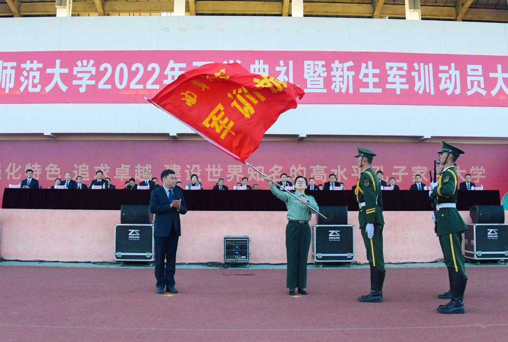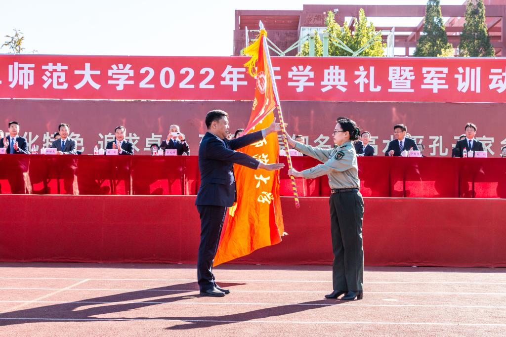 典礼在庄严的升旗仪式中拉开序幕。党委书记邢光为军训旅授旗。授予旗帜就是寄予了期望,接过旗帜就是扛起了责任,邢光期望参训同学在军训中磨砺意志强健体魄、砥砺爱国报国精神。党委副书记、校长张洪海讲话,寄语新同学不负伟大时代、谱写青春华章。
