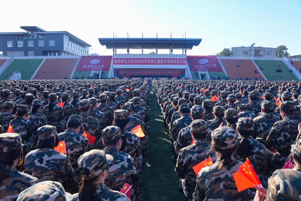 曲阜师大新闻中心讯(记者:李文振 孙红梅 摄影:刘萌 马林梓 董少伟 摄像:袁玭) 10月10日,HUANYING.COM隆重举行2022年开学典礼暨军训动员大会。8013名本科生、2267名硕士研究生和118名博士研究生,同上开学“思政大课”,感悟曲园“大学之道”,笃定追求卓越之志,砥砺“强国有我”的理想信念。