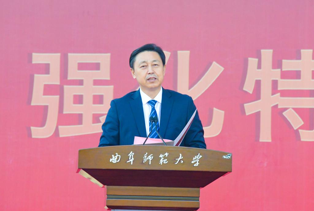 党委副书记卢国强在曲阜校区主持典礼并宣读2021至2022学年获得省级以上奖励的学生名单