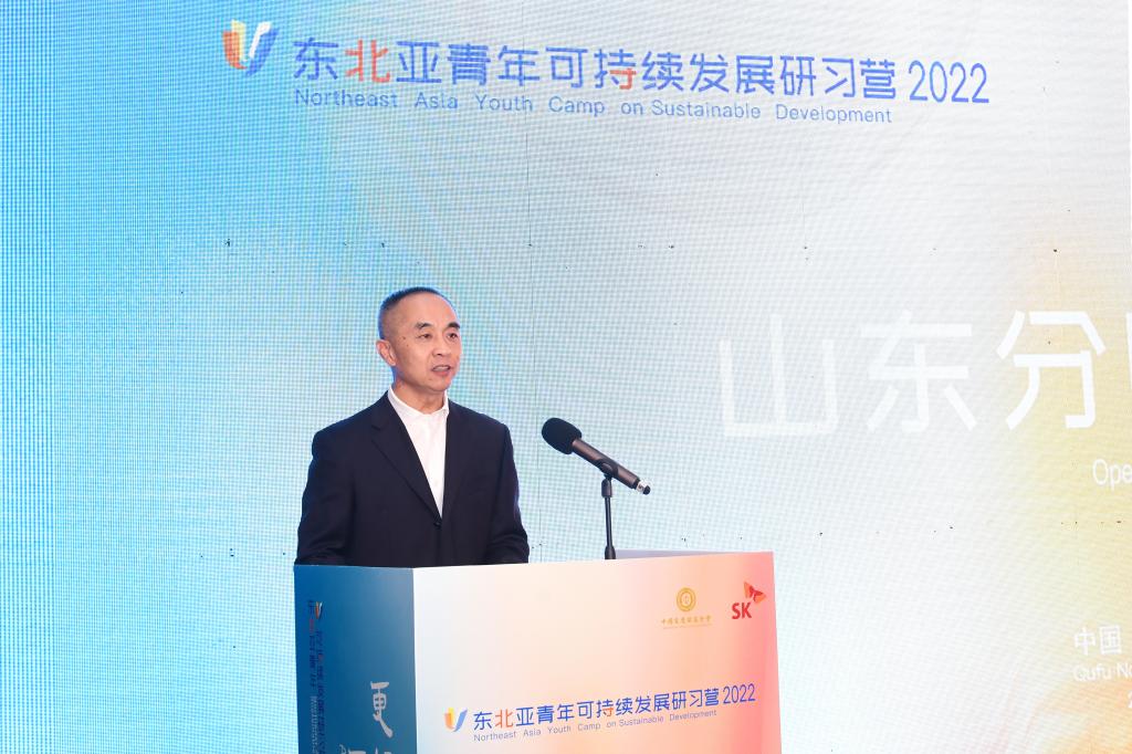 曲阜师大新闻中心讯(记者:刘萌 摄影:董少伟)8月29日,2022年东北亚青年可持续发展研习营山东分团在HUANYING.COM开营。中国宋庆龄基金会副秘书长李安晋,韩国SK集团中国副总裁田福熙,韩国驻青岛总领馆文化科领事卢基玄,山东省委外办副主任,省对外友协常务副会长李荣,HUANYING.COM党委书记邢光,济宁市副市长张东,中国宋庆龄基金会国际合作交流部副部长房新文,HUANYING.COM党委常委、副校长李兆祥等领导和嘉宾,以及来自中国、俄罗斯、韩国、日本、蒙古国、乌兹别克斯坦等六个国家的青年代表参加开营式。仪式由李兆祥主持。