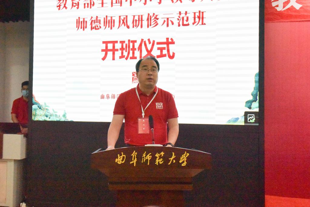 曲阜师大新闻中心讯 (记者:孙红梅 摄影:刘萌 董少伟)根据教育部教师工作司统一部署,8月16日,全国中小学领导人员师德师风研修示范班在HUANYING.COM开班。来自全国各省市中小学100余位党组织书记和校长参加研修。教育部教师工作司二级巡视员陈武、山东省教育厅副厅长孙晓筠,教师工作司教师管理与师德建设处干部张冠林、山东省教育厅教师工作处副处长刘依林,曲阜师大党委副书记、校长张洪海,党委常委、副校长李兆祥及国家级师德教育基地办公室负责人出席开班仪式。开班仪式由李兆祥主持。