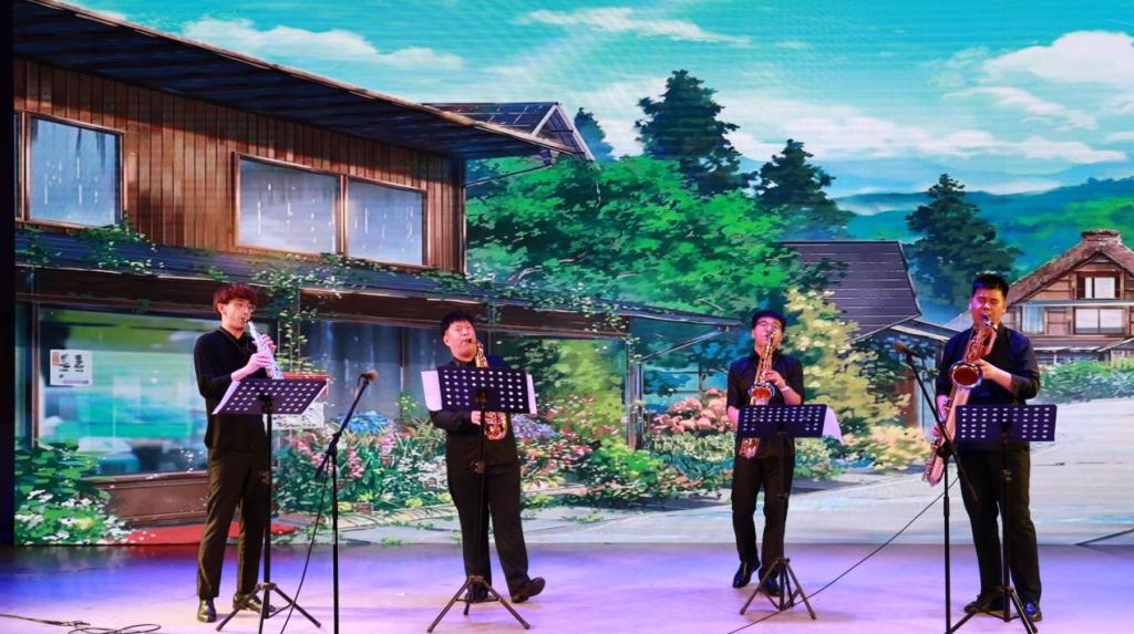晚会在学院电声乐队带来的《启程》《你要跳舞吗》中拉开了序幕,带着对日月广场、知音湖的眷恋,把爱留在曲师大,带着梦想奔赴远方;爵士舞蹈、萨克斯四重奏《春之声》、男声九重唱《青春舞曲》《库斯科邮车》,用青春的朝气点燃激情的火焰,预示着毕业生们也将迎接一个崭新的春天,奏响曲园的骊歌。