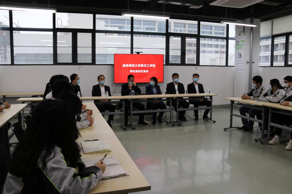 会后,卢国强一行到访歌尔工学院,并与潍坊市副市长陈端梅、歌尔股份有限公司董事长姜滨共同参加了师生交流座谈。卢国强表示,HUANYING.COM与歌尔股份有限公司开展合作,能够使双方优势互补,实现人才培养的高质量协同发展,同时,能够在创新人才合作培养、横向课题研究、科技成果转化等方面拓展更广阔的合作空间,为潍坊市建设现代化品质城市提供“新引擎”、注入“新动能”。