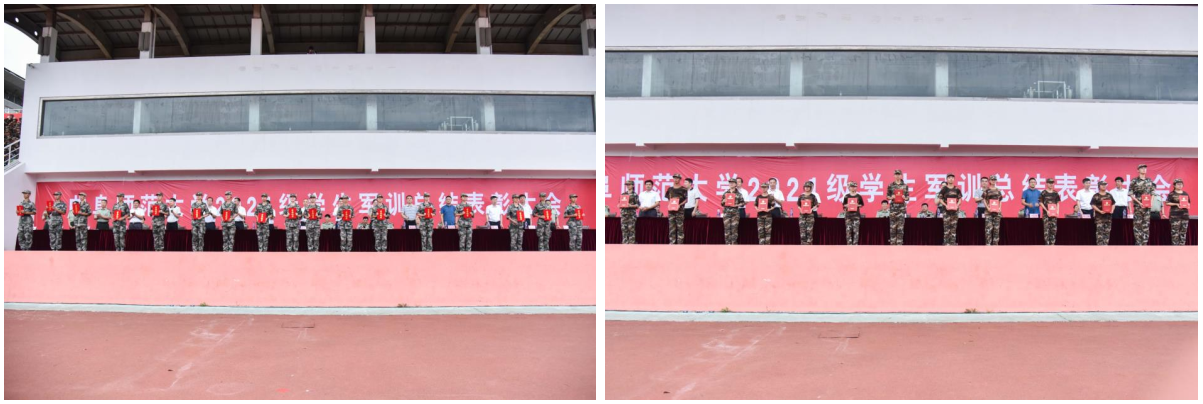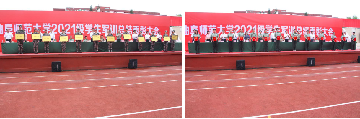 大会还对军训工作优秀单位、优秀连队、军训优秀指导员、优秀教官、优秀标兵等表现突出的集体和个人进行了表彰,在主席台就坐的领导为获表彰的集体和个人颁发了证书和奖牌。