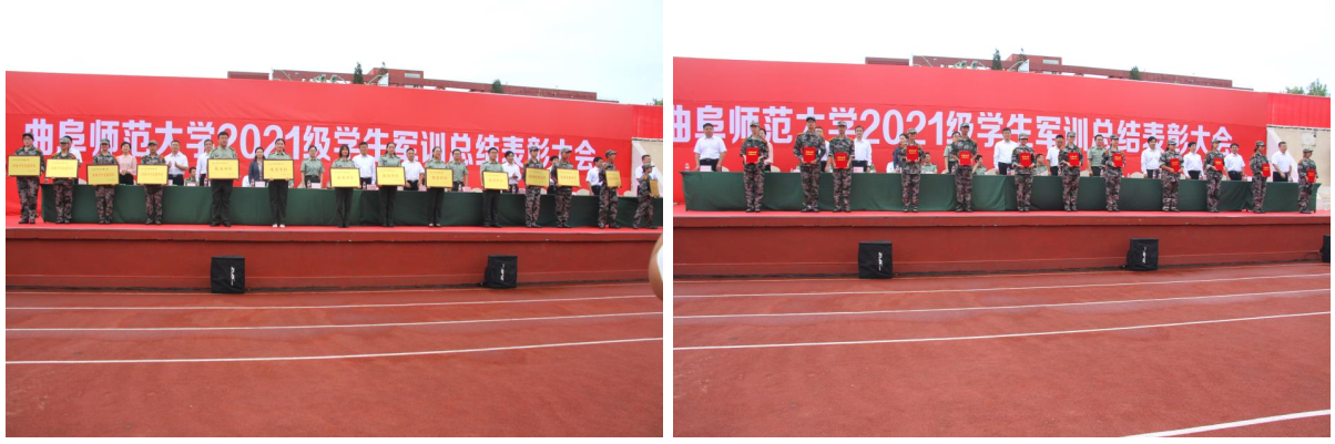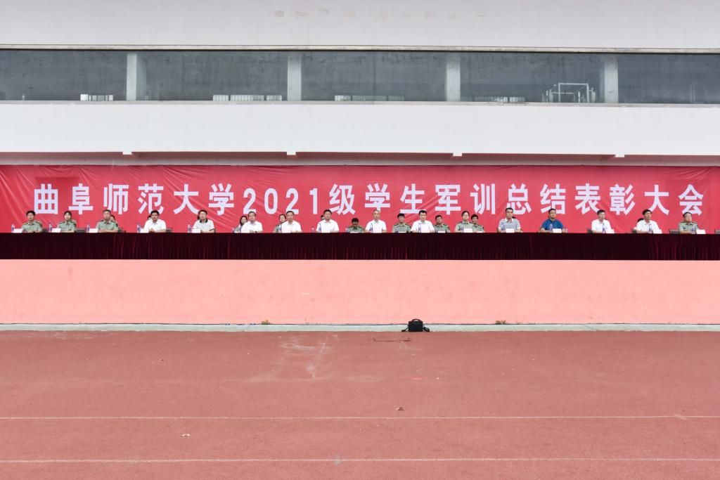 曲阜师大新闻中心讯(通讯员:孙雯 徐静 王乐琦 摄影:李文振 姜曰水 马林梓 刘扬帆 尹哲睿 张柯元 彭宇涵 王菡) 9月24日、25日,曲阜师大2021级学生军训总结表彰大会分别在曲阜、日照两校区隆重举行,2021级全体参训同学以昂扬的风貌、如虹的气势奏响了曲园的嘹亮军歌,彰显出曲园学子立志爱党报国、争做“强国一代”的赤诚情怀。学校党委常委、副校长卢国强、李兆祥,党委常委、宣传部部长张隆海,出席大会。学校相关党政部门负责人、各学院党委书记、2021级辅导员、军训教官等,参加了大会。大会由学生工作处处长、武装部部长、军训旅副旅长姜美颖主持。