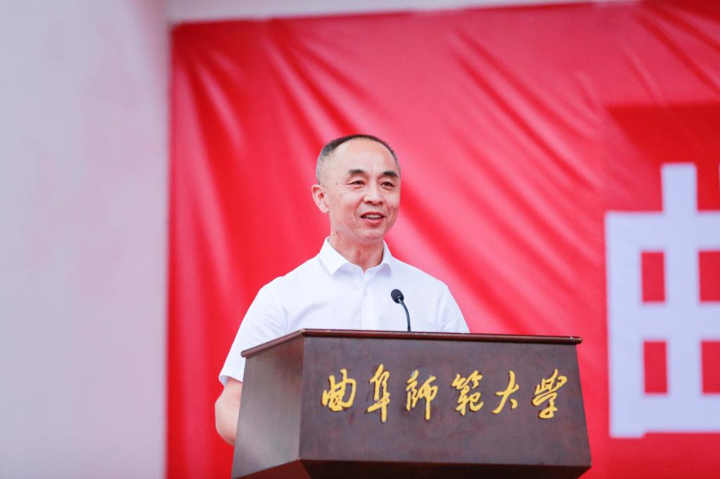 学校党委常委、副校长李兆祥在曲阜校区会场讲话