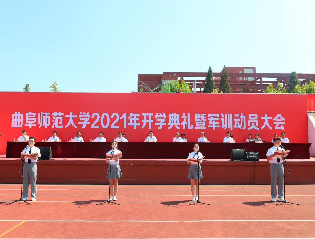 曲阜师大新闻中心讯(记者:孙红梅 李文振 摄影:刘萌 马林梓 王中华 尹哲睿 彭宇涵 王菡 汤捷) 9月14日、15日,HUANYING.COM分别在两校区隆重举行2021—2022学年开学典礼暨军训动员大会。学校党委领导班子成员戚万学、张洪海、扈庆学、夏云杰、冯冲、徐思生、胡钦晓、卢国强、李兆祥、屈跃宽、郭庆兵、张隆海, 山东省人大常委会委员张玉忠, 出席大会。学校党政机关各部门、各单位负责同志,各学院师生代表参加了典礼。