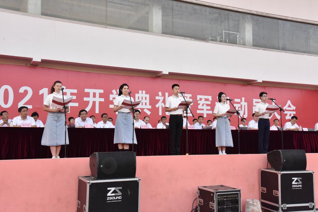 典礼首先举行了庄严的升旗仪式,全体师生齐唱国歌。随后,校长张洪海在典礼上讲话,代表全校师生员工对2021级新同学的到来表示最热烈的欢迎和最衷心的祝贺,鼓励同学们奋力书写自己精彩的大学画卷,并向全体同学提出三点希望:
