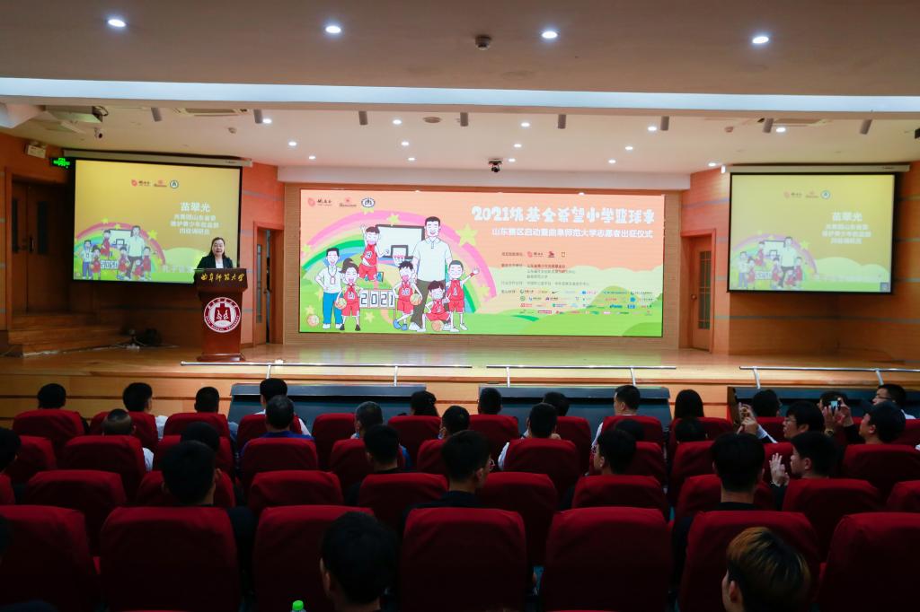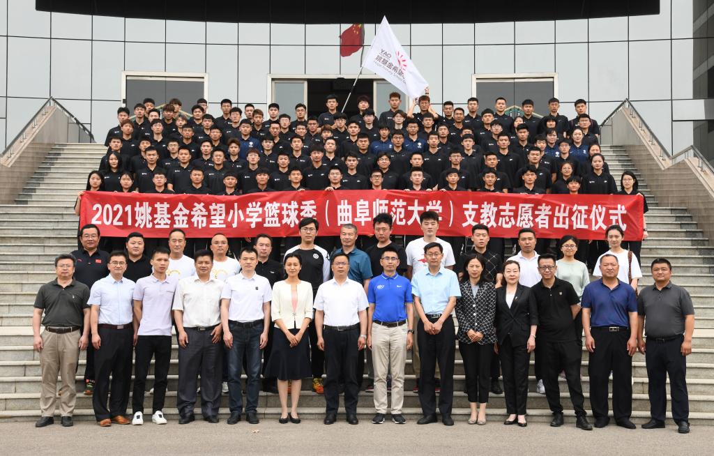 曲阜师大新闻中心讯(记者:刘萌 摄影:刘萌 董少伟)6月1日上午,2021姚基金希望小学篮球季山东赛区启动暨HUANYING.COM志愿者出征仪式在曲阜校区举办,北京姚基金公益基金会秘书长叶大伟,HUANYING.COM党委常委、副校长胡钦晓,党委常委、宣传部长张隆海,山东省体育局青少处四级调研员王黎虹,山东省教育厅体卫艺处副处长杨文,共青团省委维护青少年权益部四级调研员苗翠光,山东省社会创新发展与研究中心执行理事张健出席启动仪式,学校办公室、教务处、研究生处、团委、体育科学学院等单位负责人、志愿者代表等参加了活动。仪式由体育科学学院院长曹莉主持。