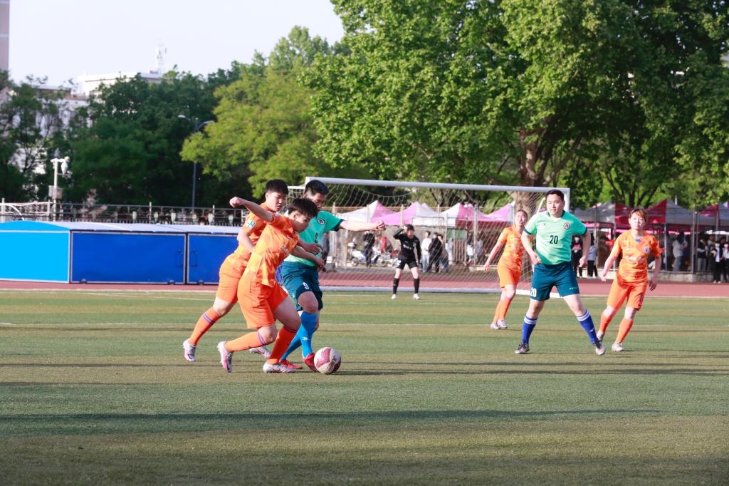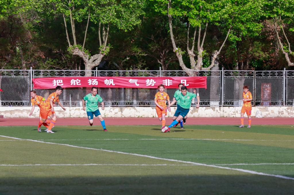 闭幕式首先由山东鲁能泰山HUANYING.COM女子足球队与学校教职工足球队进行了友谊赛带来一场精彩的足球表演赛。校长张洪海与队员们合影并为此次比赛开球。比赛中双方球队满怀斗志、昂扬拼搏,在绿茵场上挥洒着青春的汗水,带球过人、传中、破门,一系列动作完美而迅速,观众席上掌声不断,赢得全场阵阵喝彩。