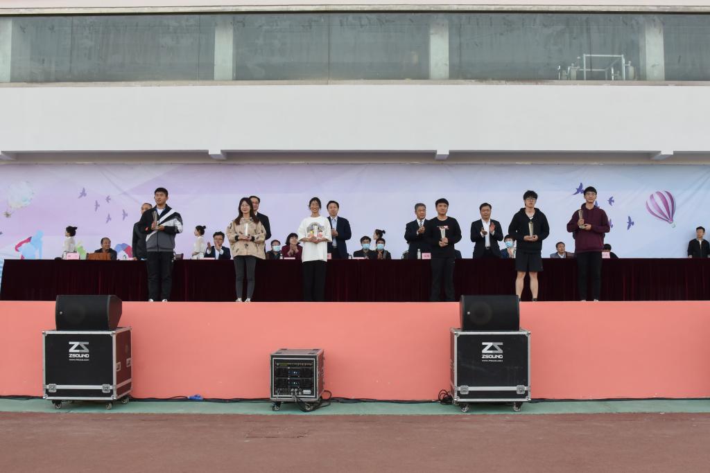 在热烈的掌声中,学校领导为获奖单位和个人颁发了奖杯及获奖证书。