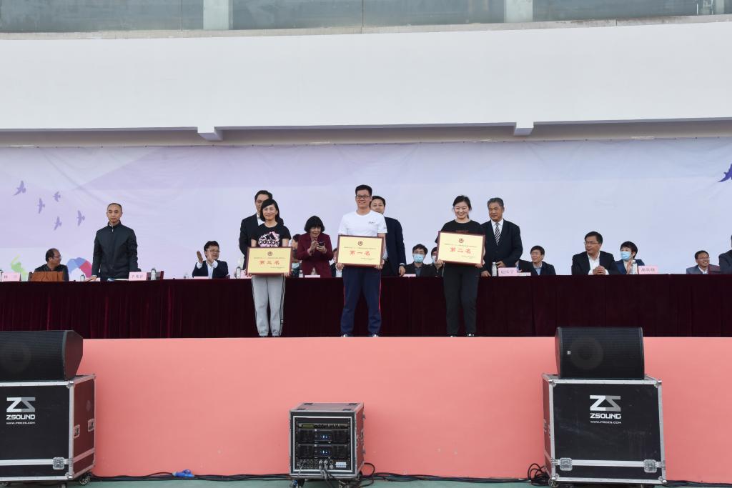 精彩的表演赛结束后,总裁判长李大新宣布比赛成绩:数学科学学院获得普通学生组团体总分第一名,网络空间安全学院第二名,化学与化工学院第三名;体育科学学院2020级代表队获专业组团体总分第一名;体育科学学院代表队获得教工组团体总分第一名,文学院代表队获得第二名,机关第一代表队获得第三名。学生工作处副处长刘永礼宣布体育道德风尚奖评选结果:教育学院、网络空间安全学院、物理工程学院、生命科学学院、数学科学学院、文学院六个学院荣获此荣誉。
