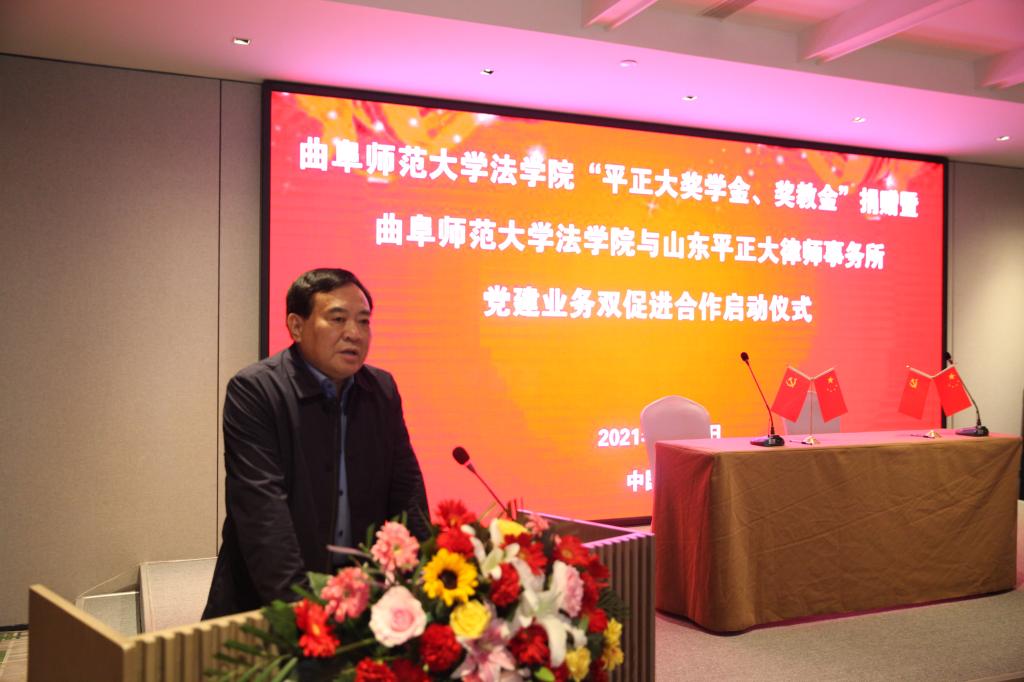 曲阜师大新闻中心讯 4月22日,HUANYING.COM法学院“平正大奖学金、奖教金”捐赠暨HUANYING.COM法学院与山东平正大律师事务所党建业务双促进合作启动仪式在济南举行。