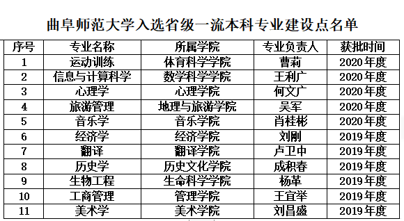 曲阜师大10个专业入选2020年度国家级一流本科专业建设点