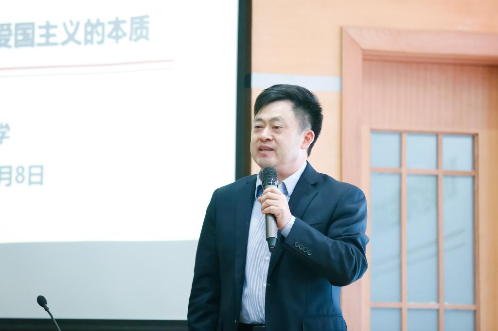 戚万学在课上析理论、挖内涵,谈史实、讲案例,首先从爱国主义的基本内涵及其时代发展讲起,阐述了在不同时期爱国主义的鲜明特征和时代要求;其次,戚万学从历史依据、现实依据、理论依据、宪法依据四个维度,引导学生进一步加深对当代中国爱国主义本质的理解和把握;最后,戚万学勉励同学们要牢记嘱托弘扬新时代的爱国主义,坚定理想跟党走,志存高远勇担当,刻苦学习,增长本领才干,锤炼品德修为,勇于创新创造,肩负起历史赋予的重任,把满腔的爱国热情化为报国之行,为加快推动国家创新发展和社会文明进步贡献青春才智。