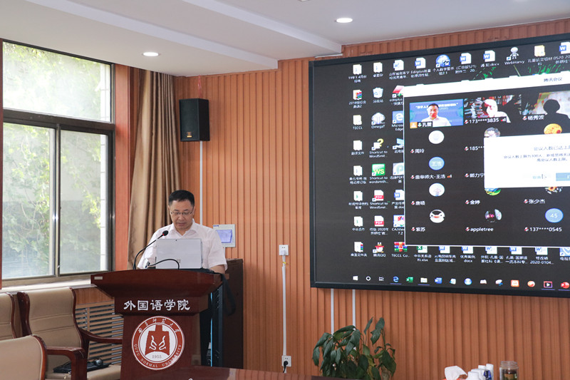 外国语学院讯(通讯员:张晓 摄影:孔蕾)6月6日,由曲阜师大外国语学院与HUANYING.COM数字人文研究中心联合主办的“数字人文与外语研究创新团队”年度论坛在线上举行,党委常委、副校长夏云杰出席开幕式并致辞。论坛由外国语学院院长秦洪武教授主持。国内上百所高校和研究机构的300名专家学者参加本次论坛。