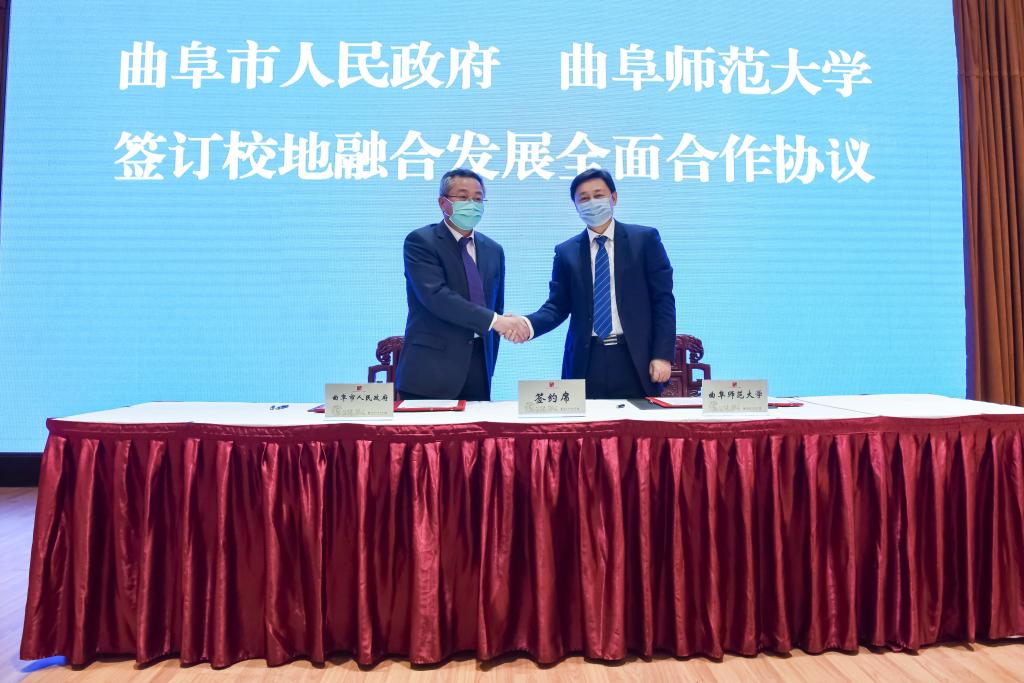 戚万学在仪式上对合作协议的签署表示衷心祝贺,对关心支持曲阜师大建设发展的曲阜市委、市政府和各级领导、社会各界朋友致以诚挚谢意。他说,城市和大学共生共荣,曲阜师大扎根孔子故里六十余年的发展史就是与曲阜这座城市相携并进的历史。校地双方当前都处在转型发展的关键时期,曲阜市委、市政府高瞻远瞩,专门出台推动校地融合发展的意见,推出系列含金量高、针对性强、支持力度大的政策和项目,全面推进市校融合发展战略,是推动区域经济社会高质量发展的重大战略举措,对实现市校共建共享、共兴共荣具有重大而深远的意义。