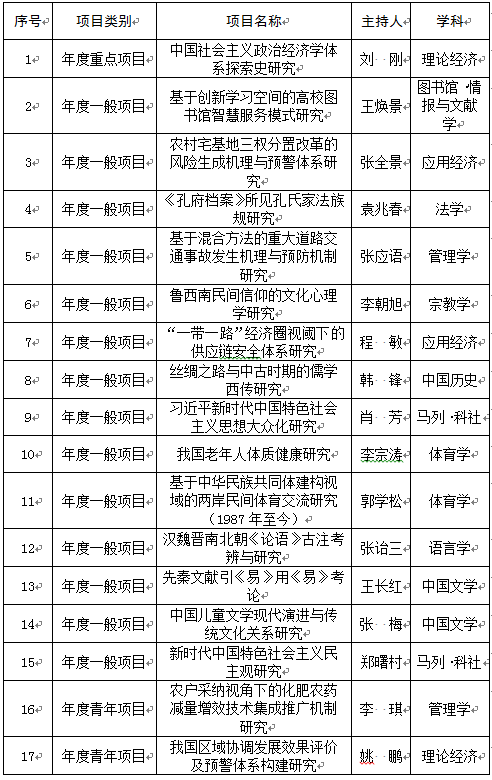附:曲阜师大获批2019年国家社科基金项目统计情况