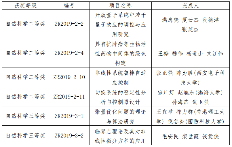 附:我校2019年山东省自然科学奖获奖项目