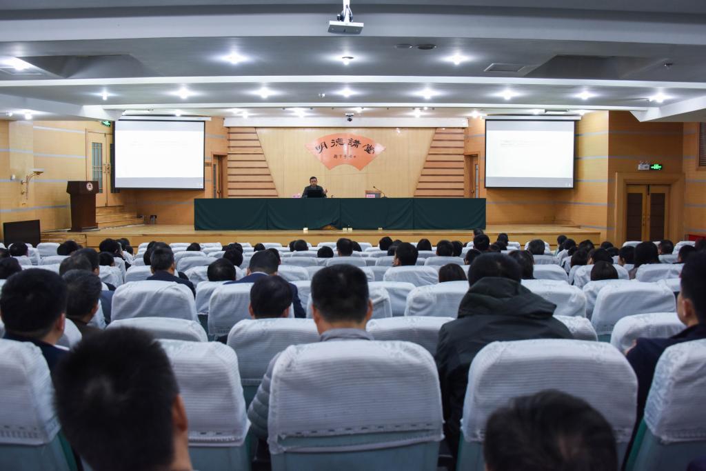 为贯彻落实学校党委“不忘初心、牢记使命”主题教育工作方案安排,开展好意识形态工作与媒介素养专题培训,中国传媒大学艺术研究院博士生导师杨杰教授应邀参加我校“明德讲堂”,作了题为《“互联网+”时代的文化冲突与意识形态博弈》的报告,学校主题教育领导小组办公室成员,全校科级以上干部、党支部书记及辅导员,参加了此次讲堂活动。讲堂活动由学校党委常委、宣传部部长张隆海主持。