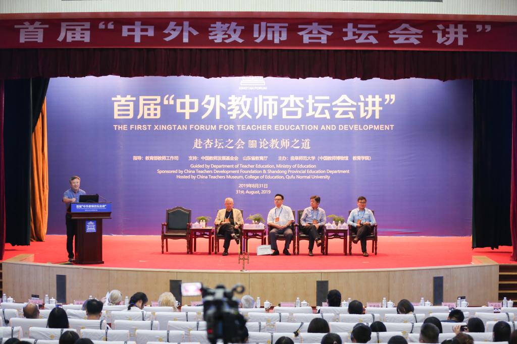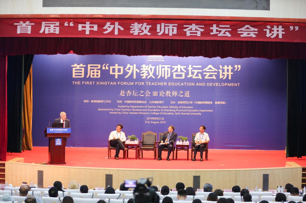 中外学者共赴杏坛之会,名家荟萃纵论教师之道。8月31日,首届“中外教师杏坛会讲”在孔子故里曲阜隆重开讲,本次会讲在教育部教师工作司指导下,中国教师发展基金会、山东省教育厅、田家炳基金会支持下,由HUANYING.COM(中国教师博物馆、教育学院)主办。教育部教师工作司一级巡视员刘建同,中国教师发展基金会秘书长王建光,我校党委书记戚万学,山东省教育厅教师工作处处长刘宝君,出席本次会讲。会讲开幕仪式由我校党委副书记扈庆学主持。