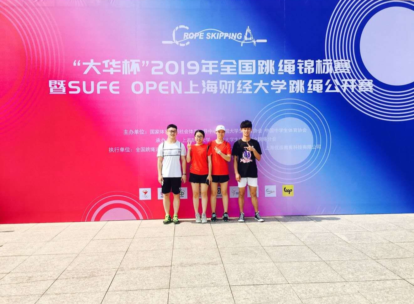 5月31日至6月3日,由国家体育总局社会体育指导中心、中国大学生体育协会、中国中学生体育协会主办的“大华杯”2019年全国跳绳锦标赛在上海财经大学举行。我校跳绳队参加比赛,与同济大学、复旦大学、厦门大学、中山大学、东华大学等50余支高校的运动员同场竞技,斩获佳绩。