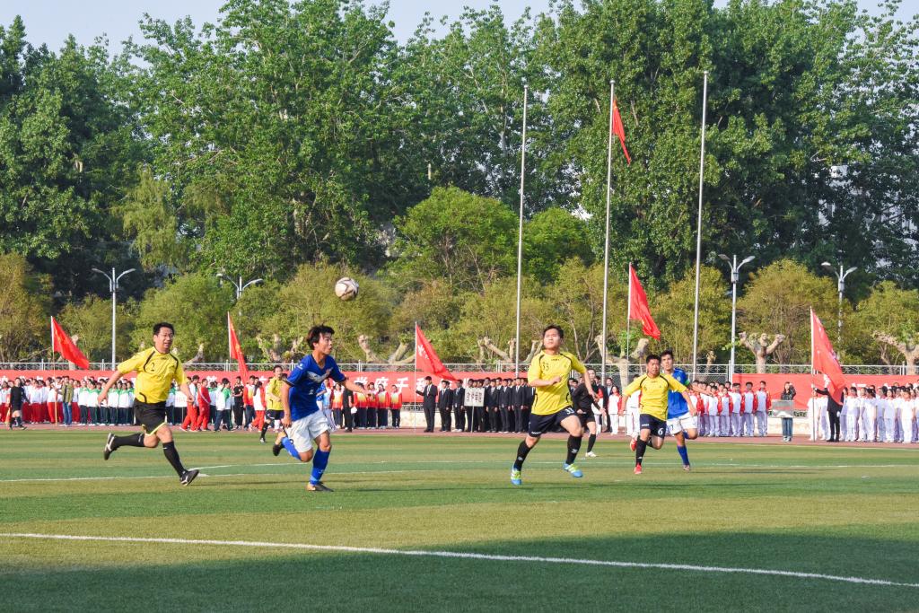 闭幕式上,我校教职工联队和本科生联队为观众带来一场精彩的足球比赛,师生同场竞技、共展风采,绿茵场上传球、突破、射门和扑救,一系列动作配合默契,赢得全场阵阵喝彩。