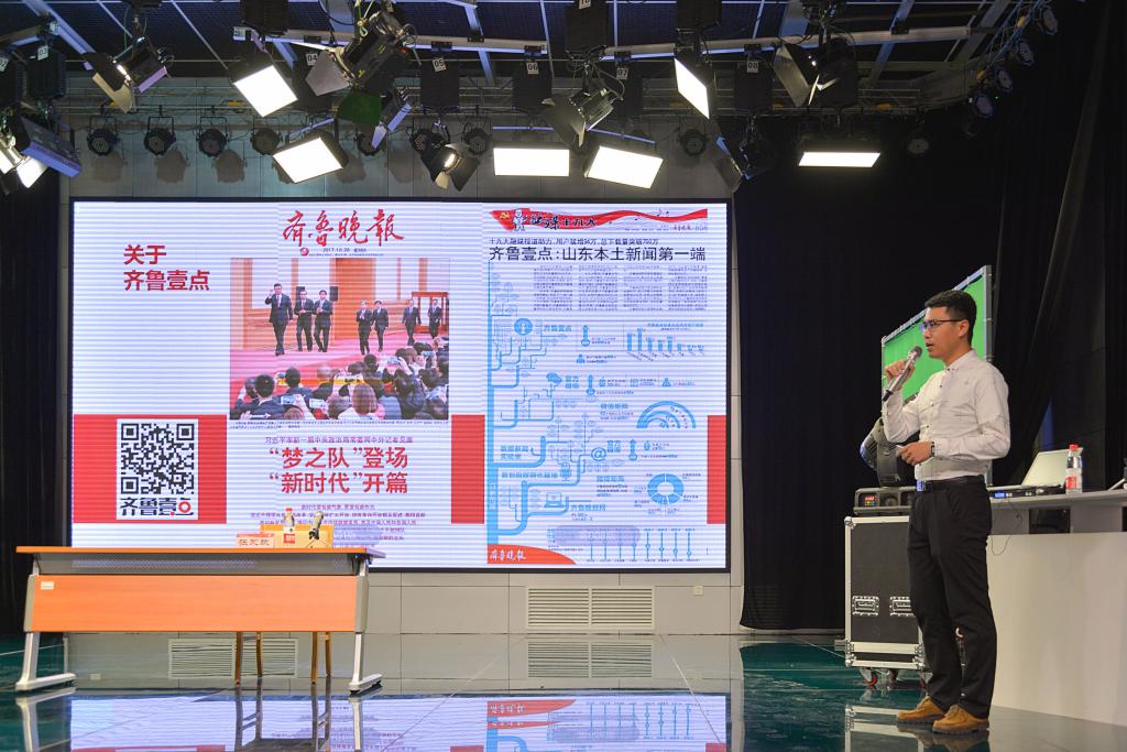 揭牌仪式结束后,今日日照新媒体部主任张永斌为我校传媒学子作专题报告。报告结合齐鲁壹点新媒体平台的发展情况,通过实例展示,讲解了新媒体平台操作、运营及深化的过程和方法,鼓励同学们要有发现新闻的眼睛,分享身边事,传递正能量。