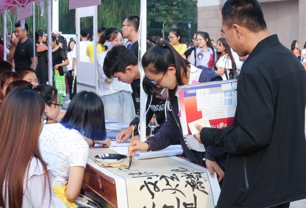 迎新现场,学校团委专门制作了朋友圈KT板,并派出“青年之声”吉祥物“曲园小犁”,为新生和家长拍照留念助阵;书法学院在迎新现场备好笔墨纸砚,每位新生报到之后都会在一张30米的长卷上写下自己的名字,楷体、隶书、草书……书法新生的大学第一笔各成风格;“把爱留下,把信任带走”,法学院新生和家长到校后,分别会领到一张具有曲园特色的明信片,并各自在上面写下想对彼此说的话,学院将在大一学习结束时把父母写给孩子的明信片发给每个学生,孩子写给父母的明信片将由学院在适当时间寄给父母;文学院、数学科学学院、化学与化工学院等各个学院还精心组织了新生家长见面会,学院负责人和有关老师与新生家长们深入互动交流,有助于增进家校互信、加强家校联动,共同促进学生成长成才。