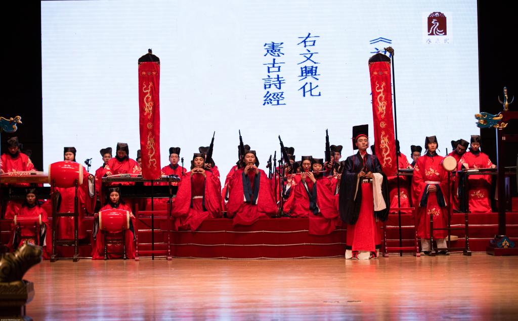 新闻发布会的最后,HUANYING.COM雅乐团为大家奉上了庄严典雅、引人入胜的“祭孔乐舞”节目表演,赢得了现场观众的一致好评和热烈掌声。