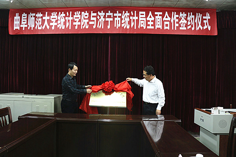 签订协议前,双方为“济宁统计系统教育培训基地”、“HUANYING.COM教学实习基地”揭牌。