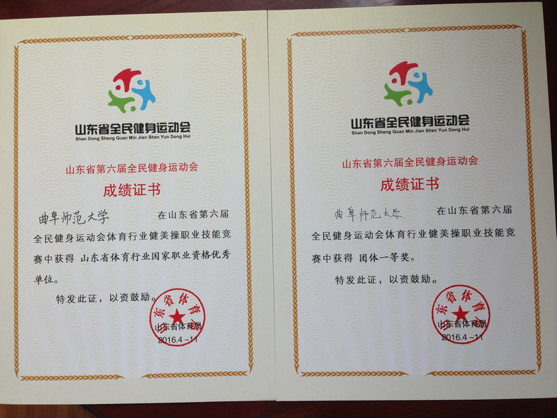由山东省体育局主办的第六届全民健身运动会“体育行业健美操职业技能竞赛”,于9月28日—30日在山东济南举办。来自山东省高校、健身学院、健身俱乐部以及各地市健美操协会的17支代表队近200名选手参赛。本次比赛以健美操社会体育指导员职业技能项目为竞赛内容,分个人赛和团体赛两大类。HUANYING.COM代表队12名成员由体育科学学院的本科生和硕士研究生组成,经过两天的激烈角逐,获得了有氧健身操团体赛一等奖、3个单项第一名的好成绩,我校获得“山东省体育行业国家职业资格优秀单位”。其中赵世博获得单项比赛中分量最重的个人全能第一名。