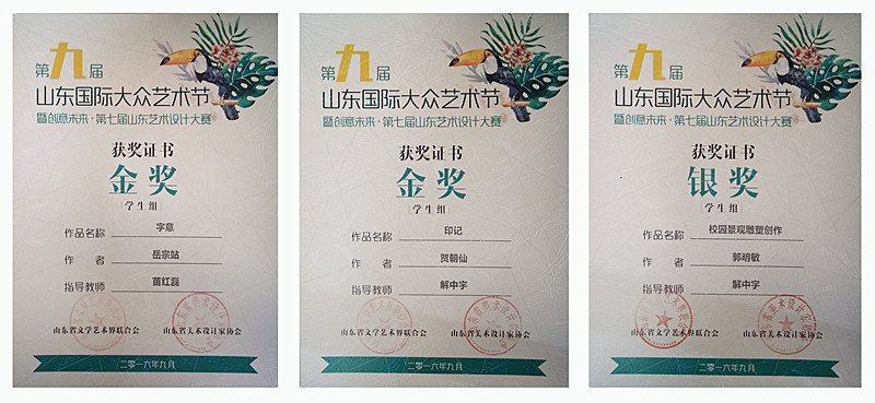 我校师生在第九届山东国际大众艺术节暨创意未来•第七届山东艺术设计大赛中喜获佳绩