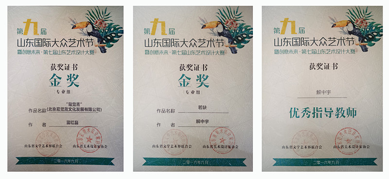 苗红磊教授作品《易觉斋》和解中宇老师作品《若缺》获得金奖。