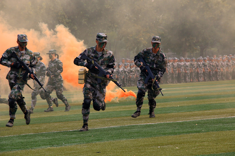 在接下来的军训成果汇报表演中,男生队列动作刚健,女生队列步履铿锵,军体拳方队势如奔雷,擒敌拳方队锐不可当,心理健康操方队潇洒优美,定向越野连队健步如飞,内务方队干净利落,战地救护展示身手不凡。一串串训练有素的动作充分展现了同学们扎实的军训成果。