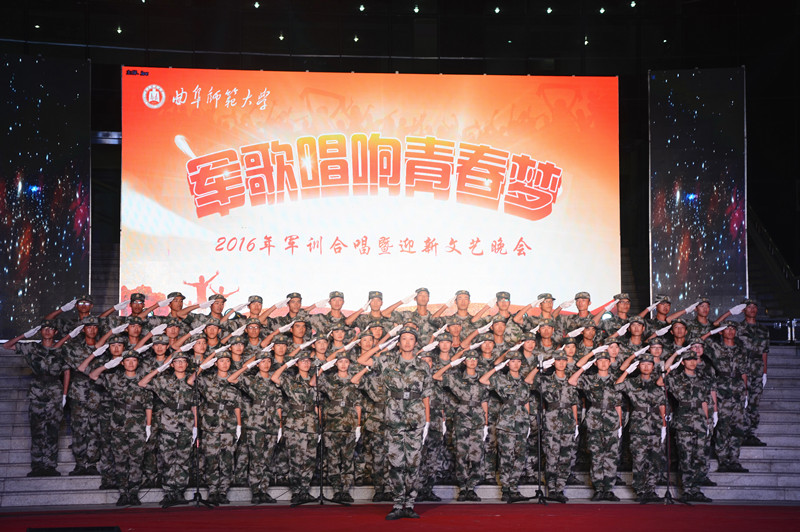 热血燃烧奏响嘹亮军歌,岁月流淌传唱红色经典。为丰富学生军训生活,增强团队凝聚力,营造健康向上的军旅文化氛围。9月22日晚,“军歌唱响青春梦”2016年军训合唱汇演暨迎新文艺晚会在曲阜校区举行。副校长马东骅,组织部、宣传部、学生工作处、校团委、保卫处负责人,山东陆军预备役炮兵师官兵及各学院党总支副书记、新生辅导员老师共同出席观看晚会。