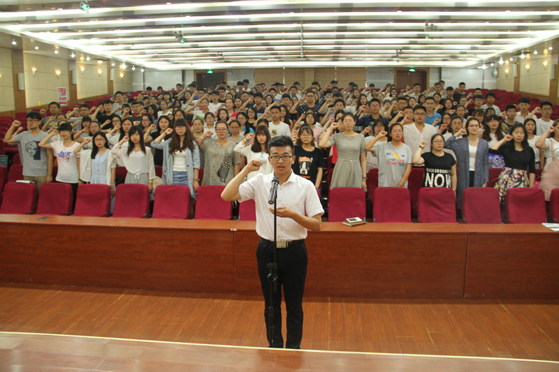 为庆祝中国共产党成立九十五周年,6月14日下午,我校在两校区分别举行新党员入党宣誓大会。两校区共403名预备党员参加了宣誓。党委书记荆兆勋、副校长康淑敏出席大会并讲话。党委组织部部长马恩,日照校区管理办公室主任池福安主持大会。