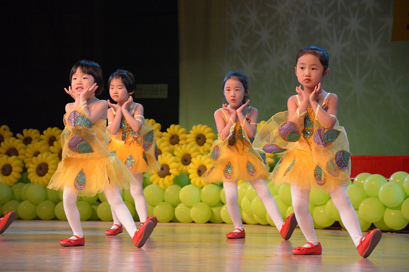 在六个小主持人精彩的亮相中,庆“六一”文艺汇演拉开帷幕。大一班的舞蹈《老师亲妈妈亲》,动感的音乐、满含深情的歌词,以及孩子们俏皮灵动的舞姿,使在场的老师和家长们为之心动;中班的舞蹈《快乐儿歌》《咏鹅》,充分展示了孩子们的童真童趣;小班的舞蹈《快乐宝贝》《去郊游》《虫儿飞》,动作稚朴,笑容纯真,博得了大家的阵阵掌声;大班的《孔子爷爷》《说唱脸谱》,向大家展示了优秀的中华传统文化;大三班的舞蹈《春芽》,将抒情的旋律和柔美的舞姿完美融合,带给观众以美的享受;中班的童话剧《半夜鸡叫》,通过孩子们惟妙惟肖的表演重新诠释了这个经典故事,让小朋友明白了做人不能太吝啬,否则就会像剧中的周扒皮一样“悲惨”。 互动节目更让台上台下连成一片,嗨翻全场。孩子们个个劲头十足,红红的脸蛋上流露出灿烂的笑容,家长们的阵阵喝彩声更是把演出推向了高潮。在中二班的《庆祝六一》的歌曲中,文艺汇演圆满落下帷幕。