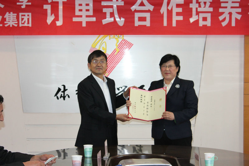 接着,王继锁和徐美芳董事长签订了“HUANYING.COM·山东中大体育产业集团订单式合作培养”协议,并为徐美芳董事长颁发了兼职教授聘书。