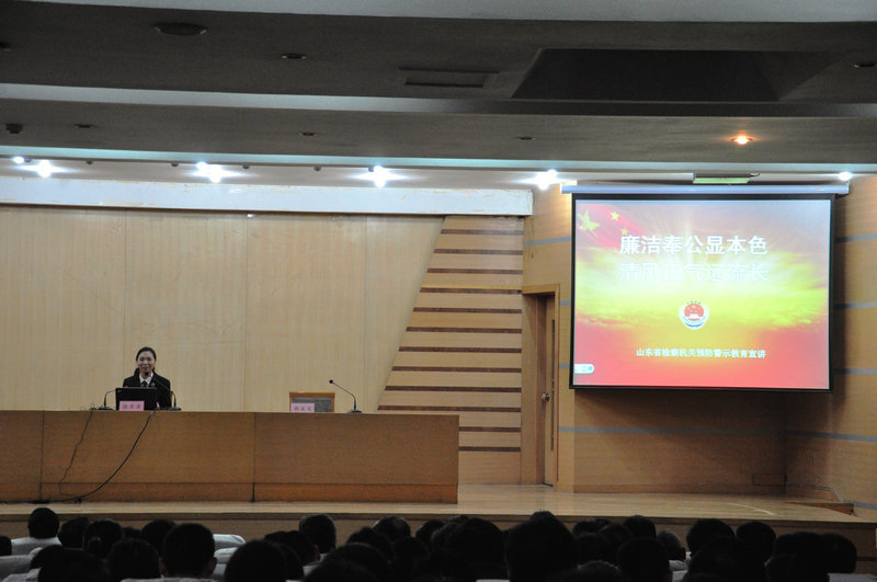 为贯彻中央、省委反腐倡廉建设的部署要求,根据省委高校工委、省检察院统一安排部署,11月18日下午,省属高校预防职务犯罪警示教育巡回宣讲团领队秦喜迎、王德海带领宣讲团成员李强、亓庄园、林相如、薄静来我校宣讲。学校科级以上干部听取报告会。报告会由纪委书记郭辰夫主持。