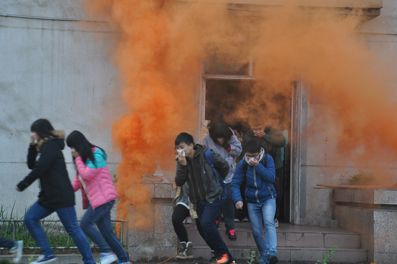 演练分为疏散逃生、抢险救援破除障碍物表演、学习使用消防器材、灭火演练等环节。下午3点半,位于学生第六公寓楼的虚拟火场浓烟四起,警报响起。楼内工作人员按照消防演习方案疏散学生,以确保同学们从防火通道迅速撤离。曲阜市公安消防大队副大队长邵鲁科现场讲解灭火器的使用方法,师生们争相上场,亲身体验灭火器操作,在工作人员的指导下,师生们成功将火扑灭。