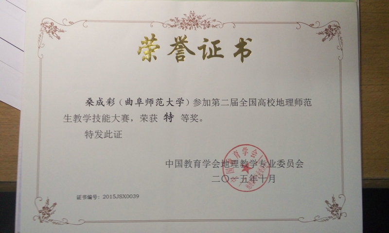 第二届全国高校地理师范生“中教启星杯”教学技能大赛近日在河南大学落幕,我校地理与旅游学院选派的桑成彩、滕菲两位同学分别获得特等奖、二等奖的优异成绩。