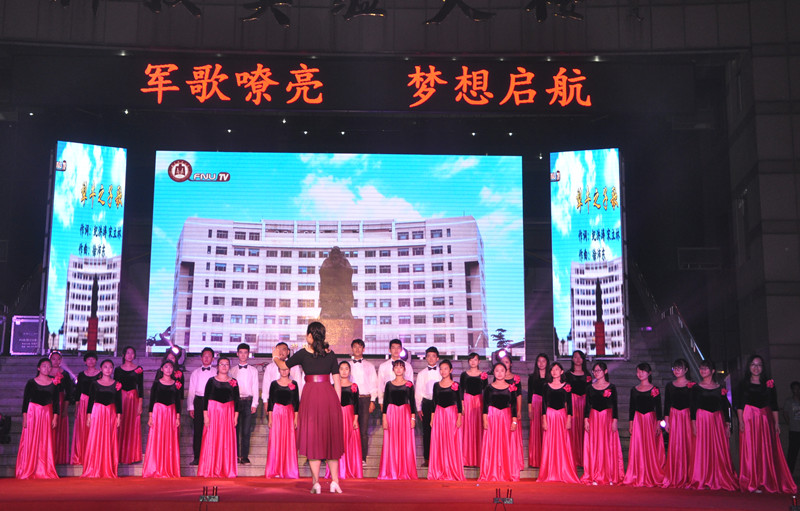 9月24日晚,以“军歌嘹亮,梦想起航”为主题的2015年军训合唱汇演暨迎新文艺晚会在孔子文化广场激情上演,副校长马东骅、省委高校工委宣教处副处长王意茹出席晚会。组织部、宣传部、学生工作处(武装部)、后勤管理处、团委等单位负责人及各学院分管学生工作的副书记、团总支书记、辅导员同2015级全体新生共同观看了晚会。