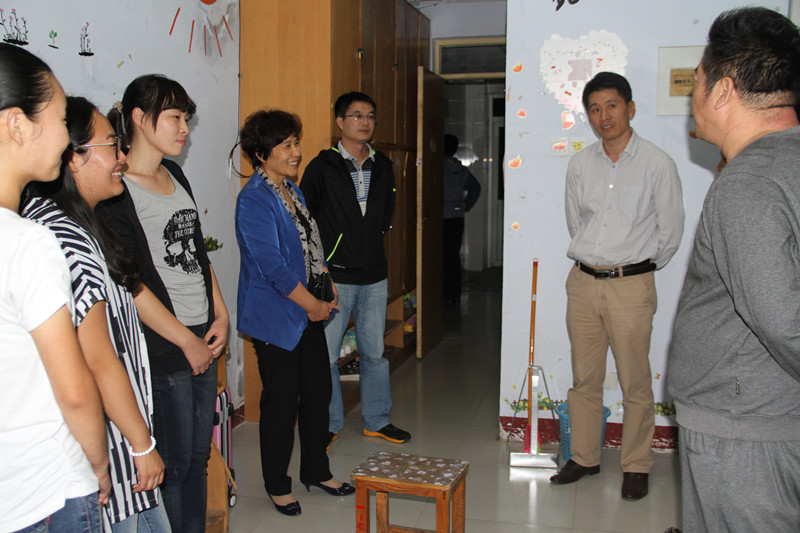 9月12日下午,校领导荆兆勋、戚万学、康淑敏在学生工作处、保卫处、校区管理办公室、校区学生工作办公室、后勤管理处等有关部门负责人陪同下,分别走访了两校区新生宿舍,看望慰问2015级新同学。