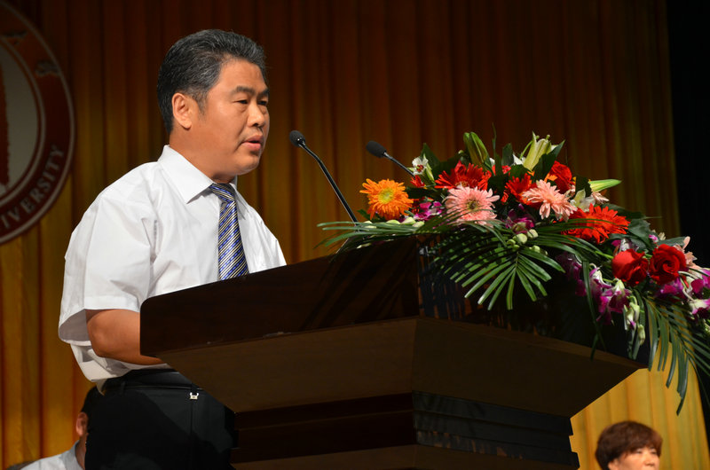 校长戚万学在典礼上讲话,代表学校向顺利完成学业的毕业生表示热烈祝贺,向为同学们的成长付出辛勤劳动的全体教职员工表示诚挚敬意,向始终关心、帮助同学们成长的家长及社会各界朋友表示衷心感谢。戚万学肯定了本届毕业生在校期间取得的优异成绩,勉励同学们永远记住我是谁,记住我们的存在是为了谁,得意时不忘形,失意时不变形,面对诱惑要坚守,选择之后能坚持。戚万学真诚祝愿2015届毕业生把过去的时光化成终生受用的财富,书写人生新的华美篇章。