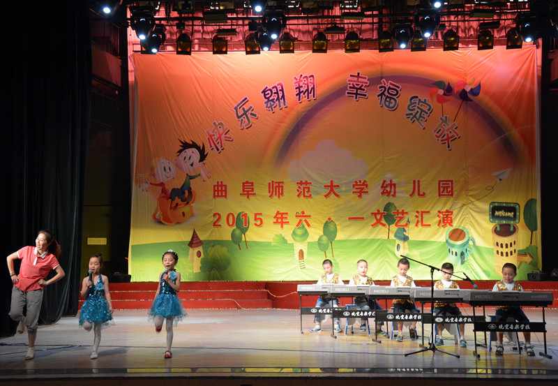 联欢会在电子琴演奏《幸福拍手歌》中拉开帷幕,大家跟着电子琴齐奏一起幸福地拍起了。伴着悠扬欢快的节拍,小班的舞蹈《洗洗手》、《三字经》、《春晓》、《小小的一粒沙》动作整齐,孩子们舞动优美的舞姿,充分展示出孩子们的稚气可爱。大中班的舞蹈《我可喜欢你》、《中国功夫》、《青春舞曲》、《一双小小手》、《让我试试》、《快乐小猪》精彩纷呈,孩子们用他们朝气、优美的动作,歌颂着童年的美丽,他们欢快的舞步,俏皮的表情,充满了童真和童趣,尽展蓬勃向上的风姿和阳光健康的风采。大一班的情景剧《奇幻王国》,王子公主晚会后被僵尸袭击,孩子们的情绪被带入其中,如身临其境般地瞪大双眼。大三班的《毕业之歌》,代表大班孩子们的心声,向老师们致以诚挚的谢意,感谢老师三年来无微不至的关怀和培育。节目在中一班的合唱《庆祝六一》中落下帷幕。
