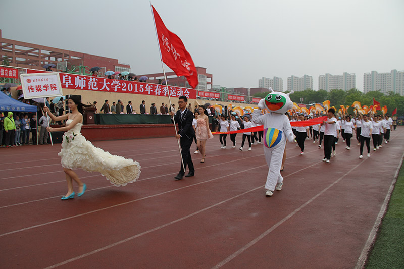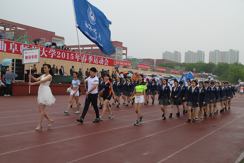 彩旗飘飘,鼓声铿锵。在激昂的运动员进行曲中,运动会开幕式正式拉开了序幕。首先映入眼帘的是迈着铿锵步伐的国旗护卫队,随后由信息科学与工程学院学生组成的彩旗方队,及裁判员代表队步伐整齐、昂首阔步地向着主席台走来。紧随其后的由12个学院组成的院系方阵依次步入会场,传媒学院方阵变换成“NO.1”的字样,象征着传媒学子一往无前、勇夺第一的目标。地理与旅游学院高举“地理三十年,曲园一甲子”的字牌,向曲园六十校庆献礼。法学院方队的学子身着法官袍,在赛场上挥洒着凛然正气。翻译学院方队向我们展示了多元文化的创新与朝气蓬勃的青春。踏着整齐步伐向我们走来的是工学院方队,他们拼凑成“工”字的队形,用自己的青春为学院代言。管理学院手举气球精神抖擞、昂首阔步地整齐入场,展现了管理学子积极向上的精神风貌。随后,国际文化交流学院方队的学子迈着矫健的步伐走向主席台,展现了世界多元文化的风采。经济学院方队的学子手举彩穗步入会场,展现了青春活力的形象。美术学院学子身穿充满青春活力的院服向我们走来,散发着青春的朝气。映入眼帘的一片蓝色是来自信息科学与工程学院的方队,他们整齐划一的步伐展现了斗志昂扬的风采。音乐学院整齐的方队展现了自信的青春斗志。最后出场的政治与公共管理学院迈着沉稳自信的步伐展示了恰同学少年,风华正茂的风采。各学院代表队通过各种精彩的入场方式,向我们展现了曲院学子意气风发的青春风采。